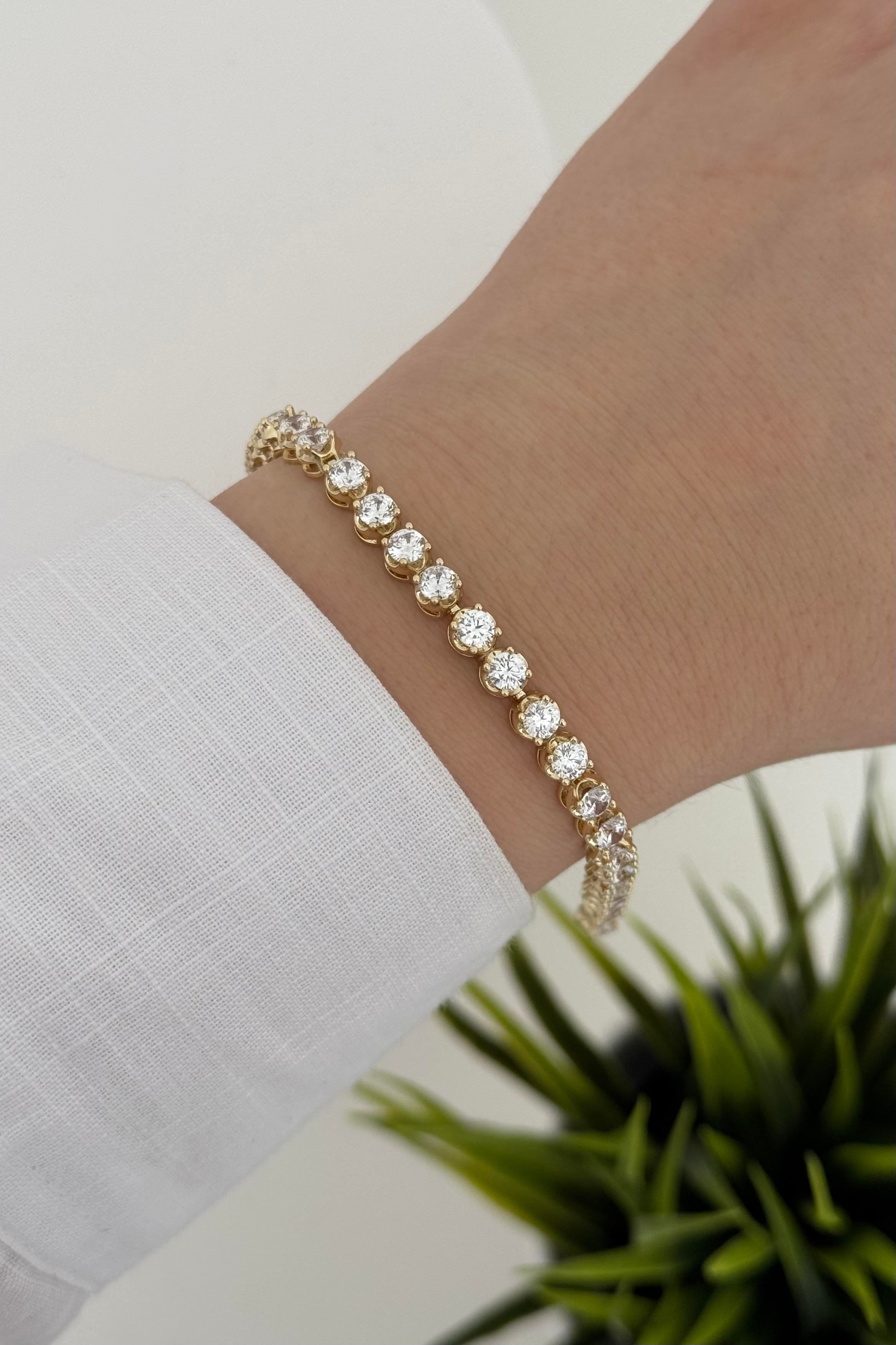 Vip serimiz (xuping) 14 ayar altın kaplamadır. Üzerinde ki taşlar zirkondur. Ürün uzunluğu 17,5-19 cm'dir. Alerji testinden başarı ile geçtiği için hassas ciltler için de uygundur. Uzun süreli kullanım ve parlaklığını kaybetmemesi için parfüm, deterjan gibi kimyasallarla temas etmemesi önerilir.
